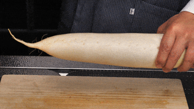 食材に真っすぐ当てるだけで潰さずに“切るのはなくスーッと通り過ぎている”ような錯覚を起こす切れ味そして刃離れを実現してます。